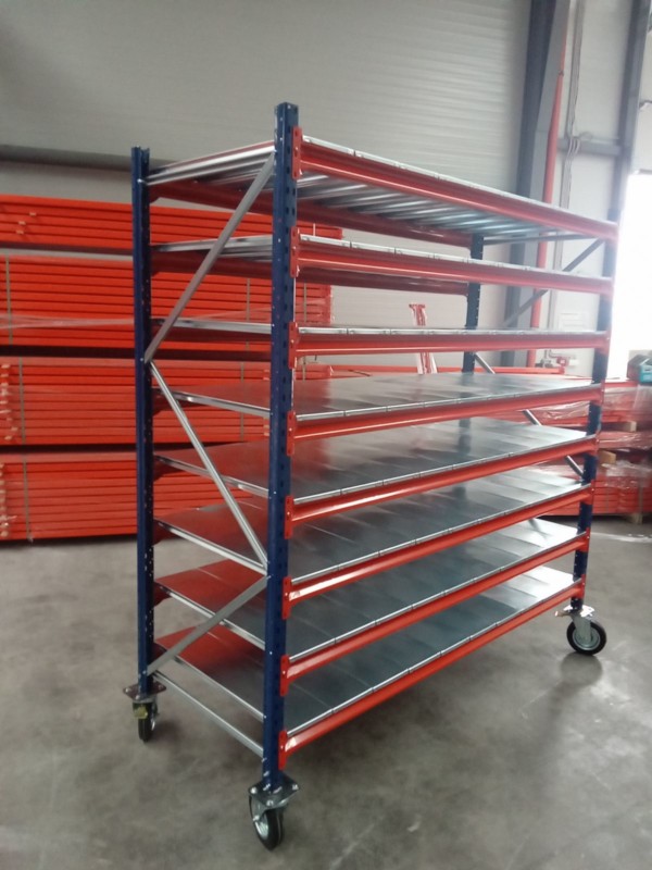 - Гравитационни стелажи – за бързооборотни складове.